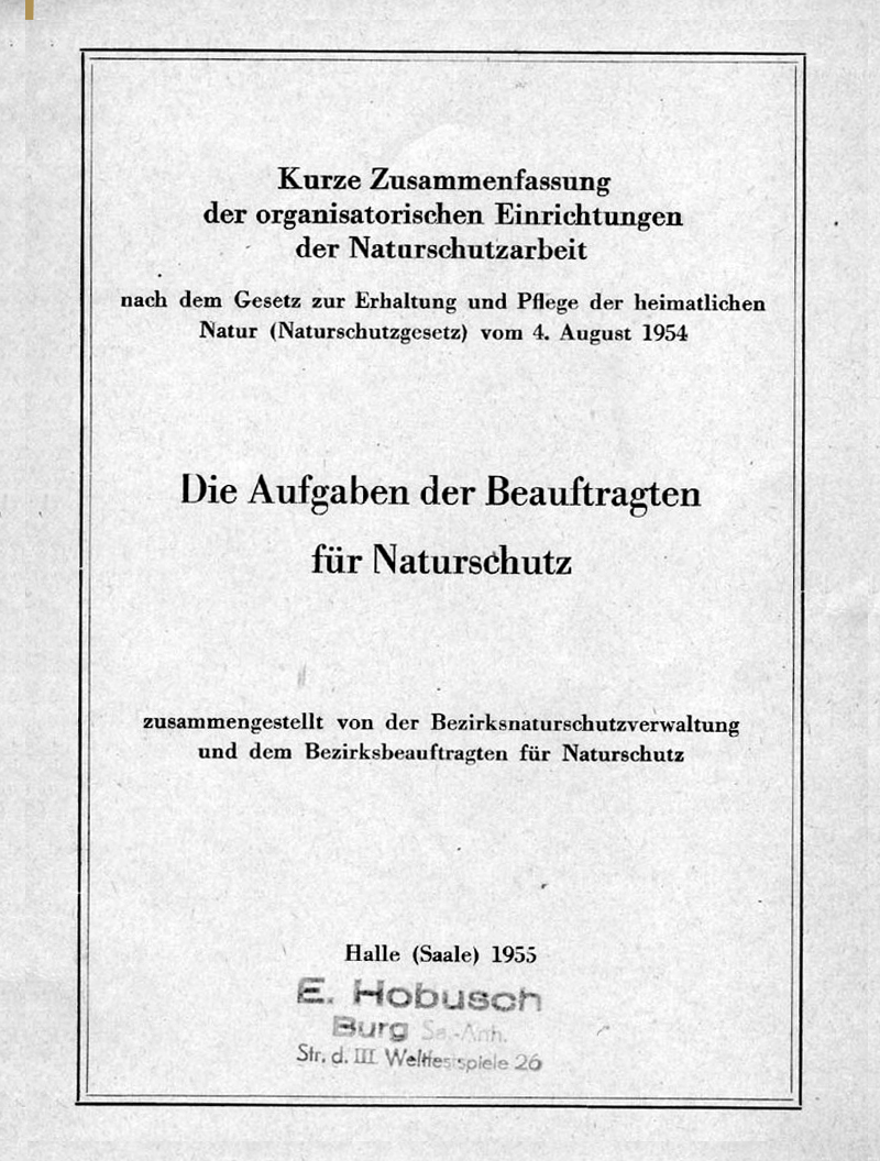 Dem Vater von EH, Herrn Robert Hobusch wird ein Ausweis als Beauftragter für Naturschutz für den Kreis Köthen von der Naturschutzverwaltung des Rat des Bezirkes Halle ausgestellt.